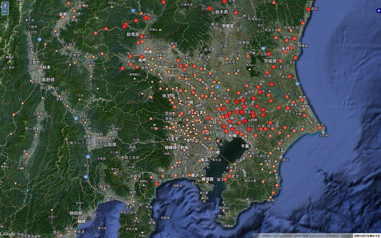 かつては放送事故としてセシウムさんが登場し批判が集中していましたが、米粒を撒き散らすように首都圏全体がセシウムだらけというのがわかりますね。